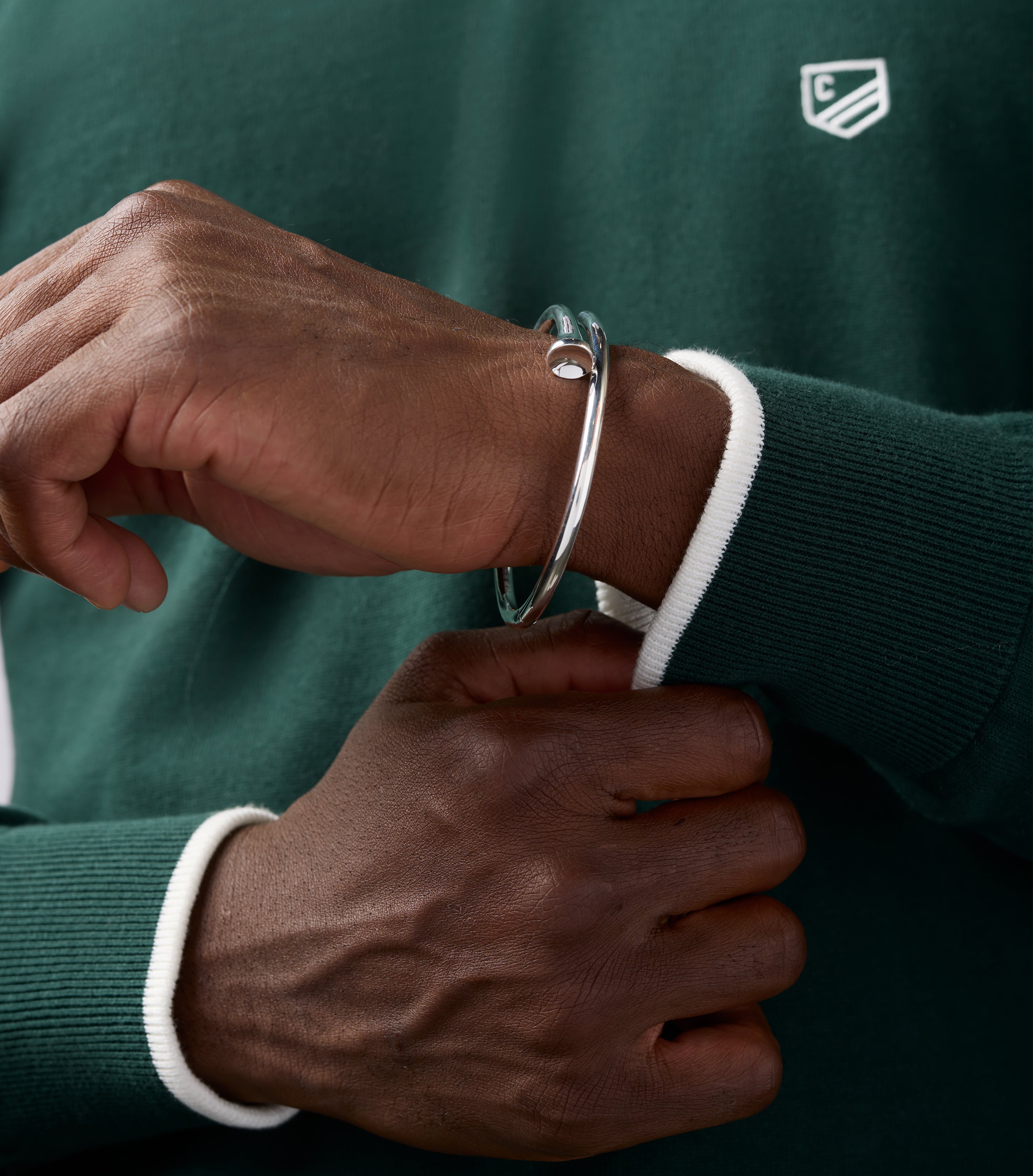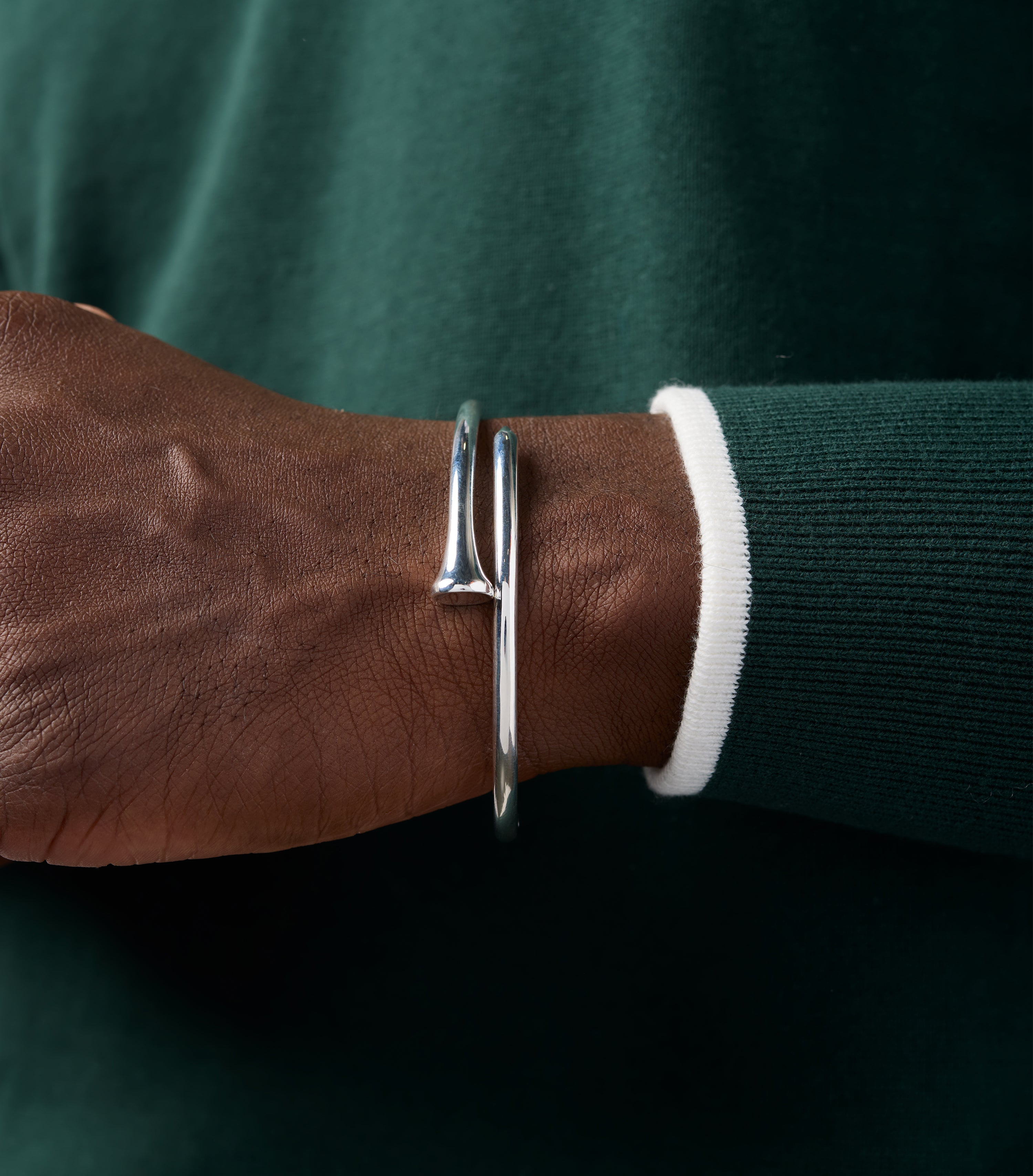 With its smooth contours and modern silhouette, it’s a subtle yet striking statement piece for those who appreciate both craftsmanship and the game. Designed to be worn alone or stacked, this bangle elevates any look with understated luxury.