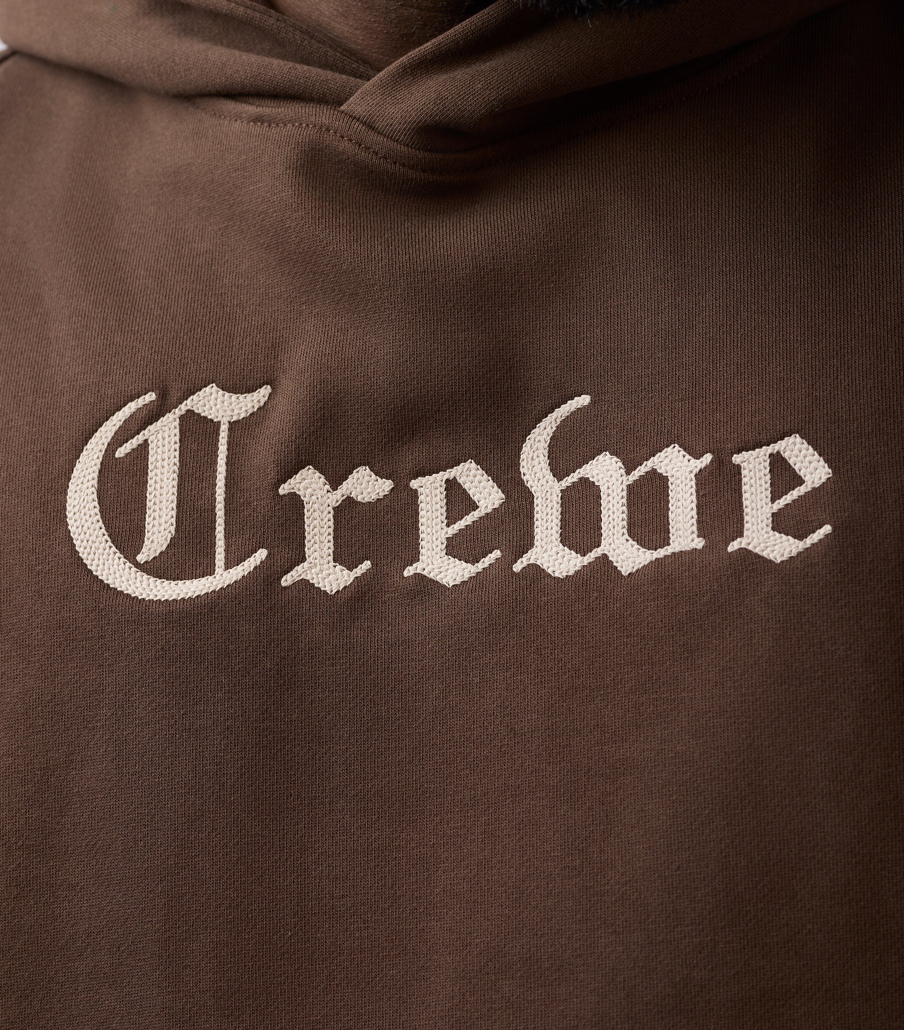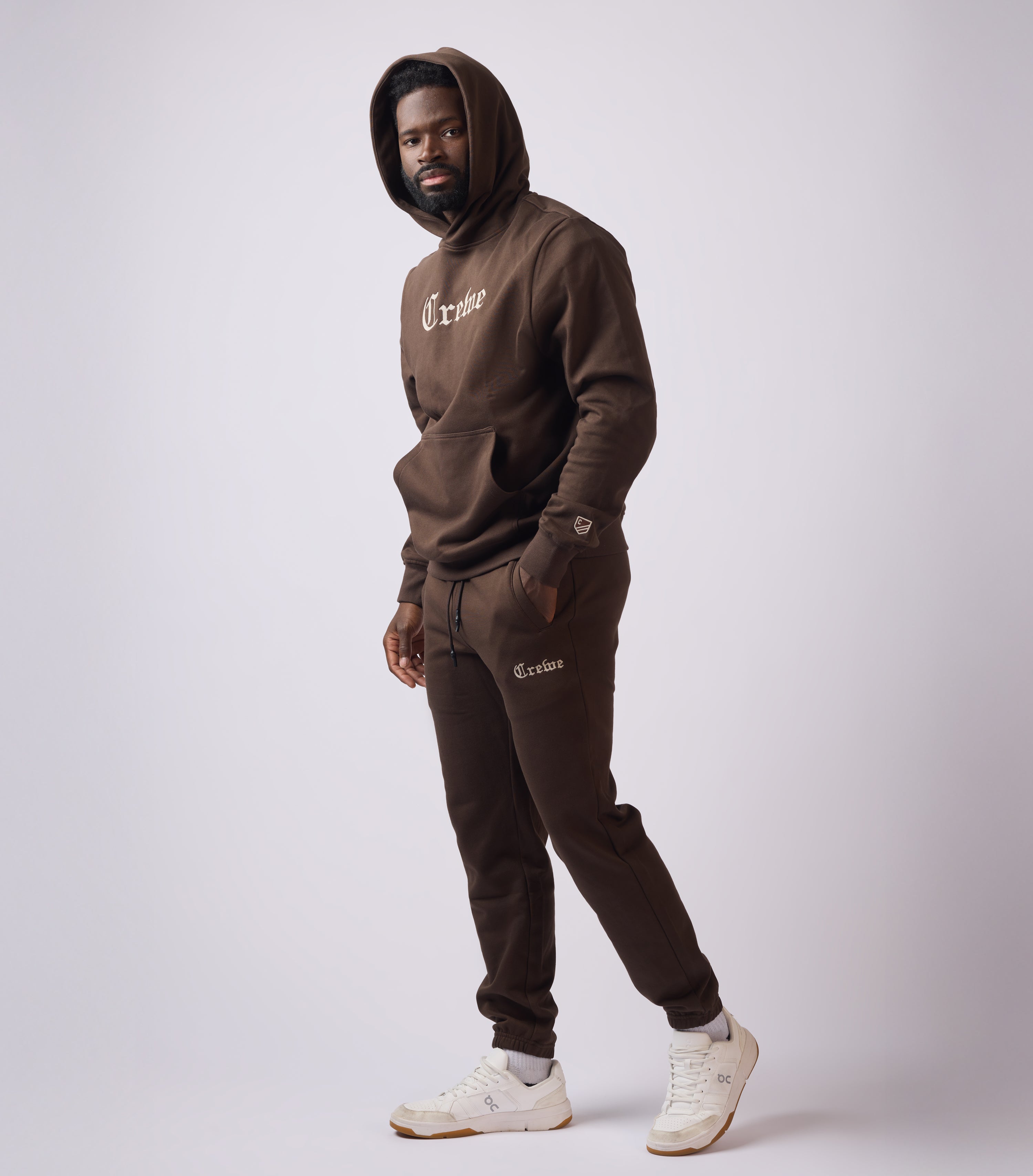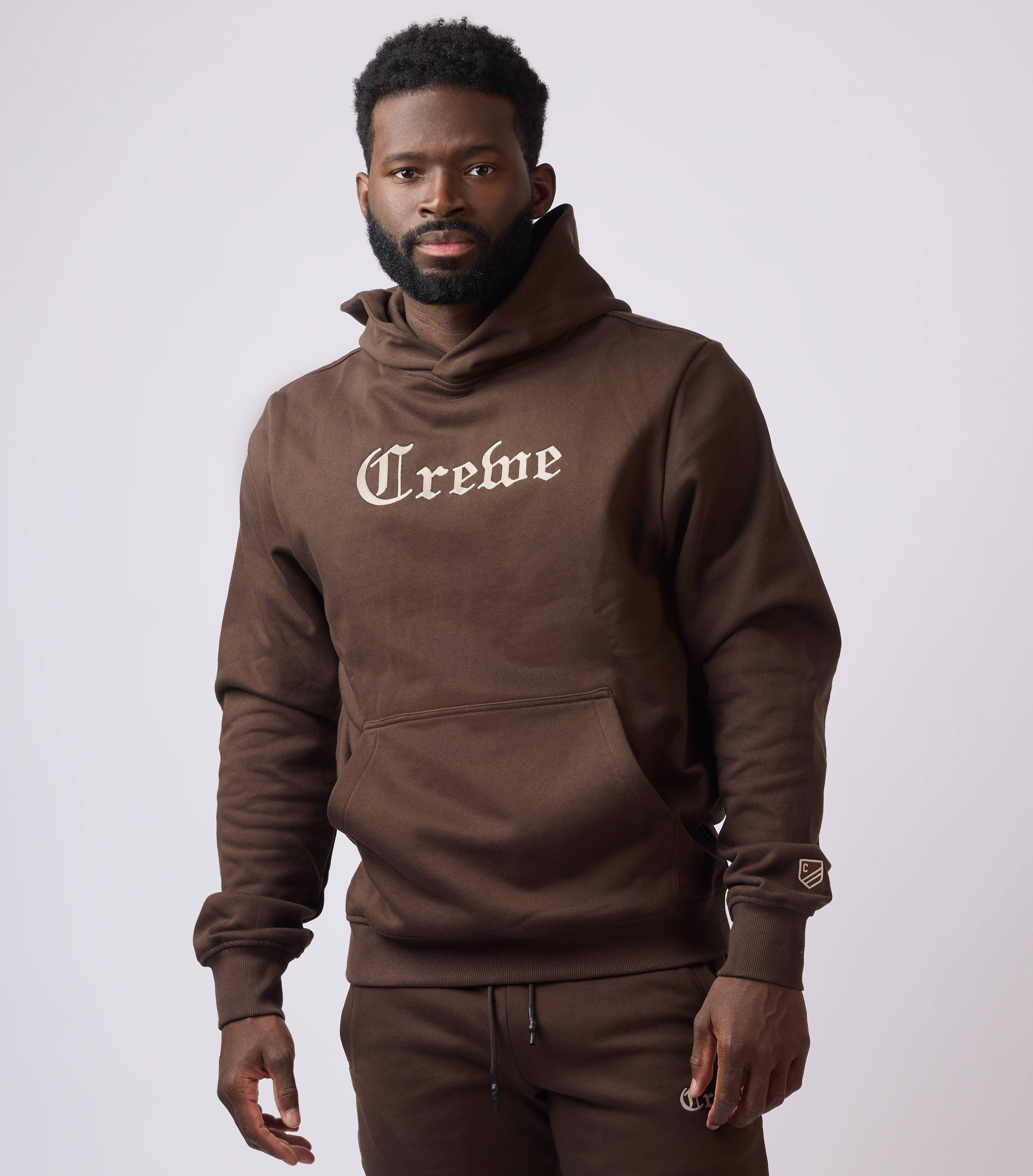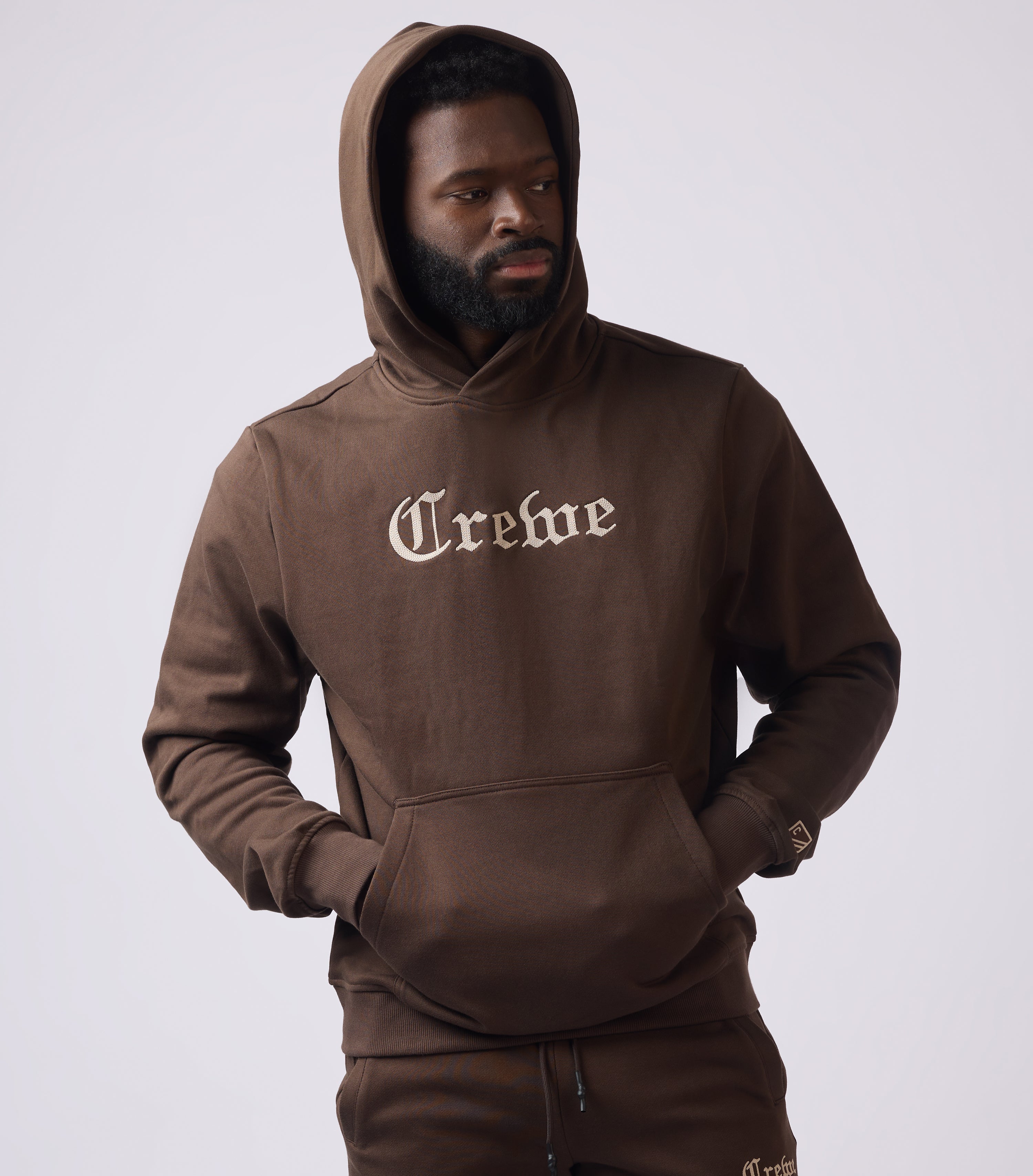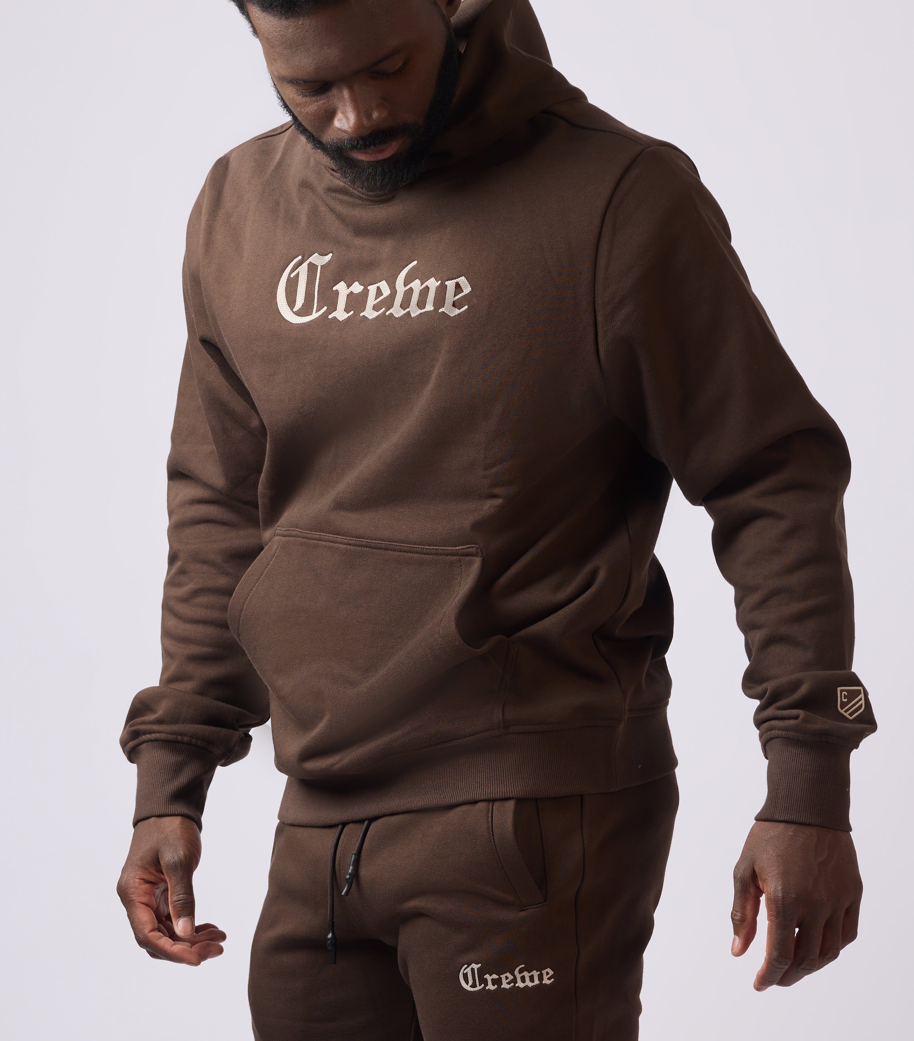 The hoodie features a relaxed unisex silhouette with a double-lined hood, kangaroo pocket, and ribbed detailing for a clean, tailored finish. Matching joggers offer a tapered fit with elastic cuffs, an adjustable drawcord waist, and roomy pockets for daily utility. Both pieces are finished with our signature “Crewe” graphic in a crisp contrast stitch, giving the set a modern heritage feel.